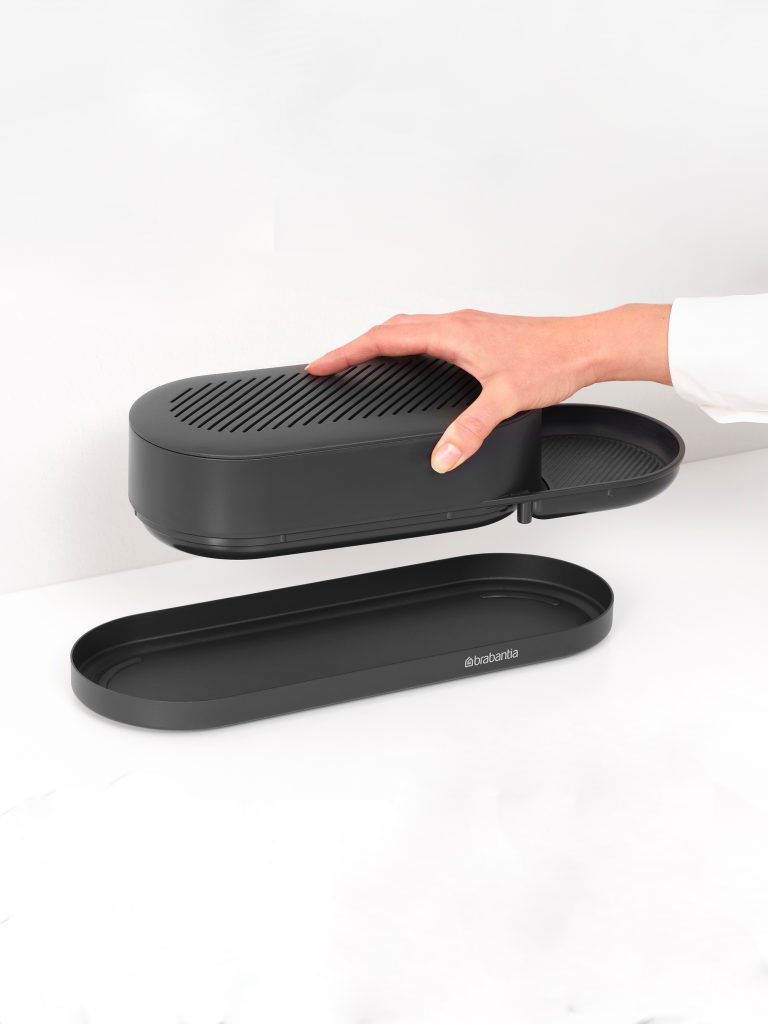 داخل نظم دهنده یک سینی چکه گیر قرار دارد که به گردش هوا کمک می کند. ترکیب درپوش و سینی داخلی، جریان هوای 360 درجه می سازد تا رطوبت کمتر جمع شود و احتمال بو گرفتن اسکاچ و دستمال کاهش پیدا کند. این یعنی هم ظاهر تمیزتر کنار سینک، هم حس بهداشتی تر در استفاده روزانه.