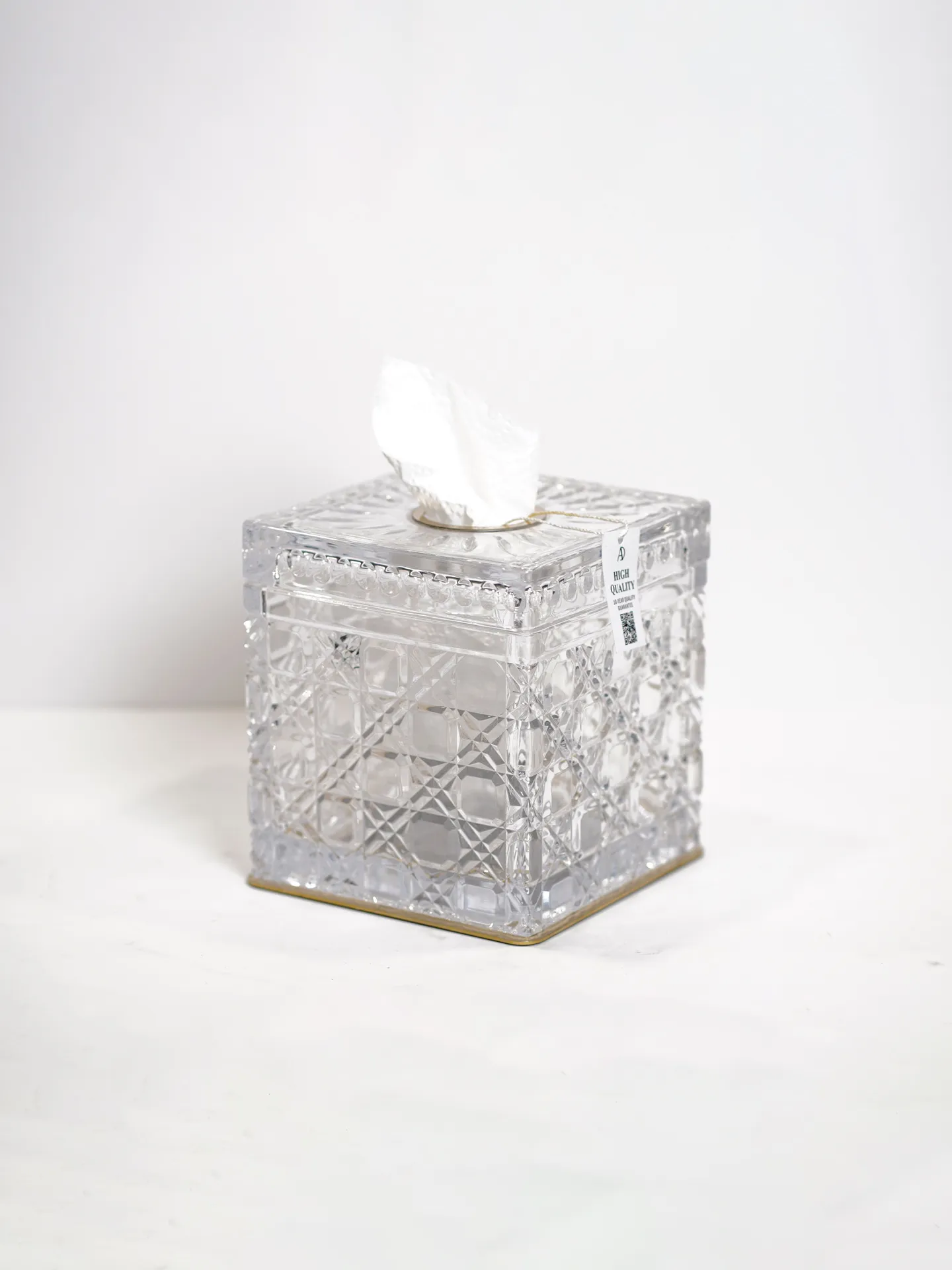 باکس دستمال کریستالی مربع کروم ترکیبی از کریستال شفاف و کف برنجی مقاوم