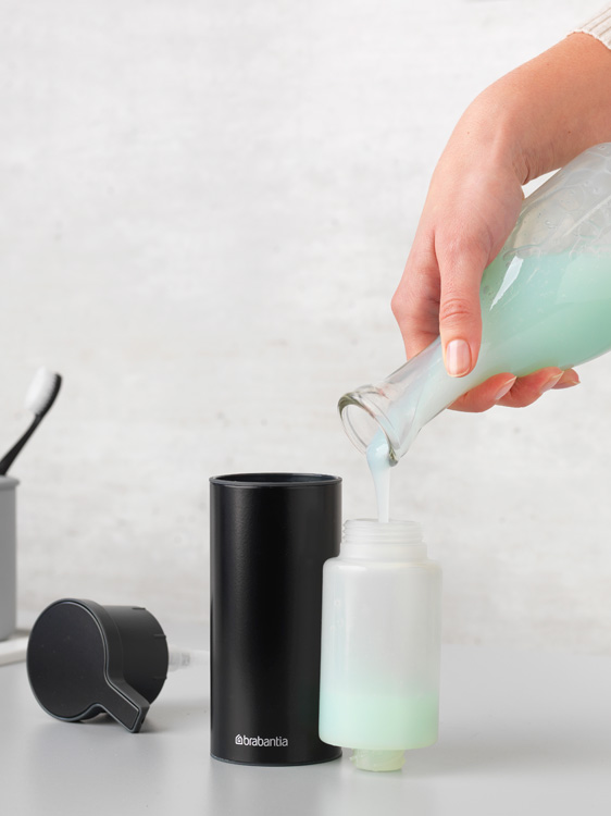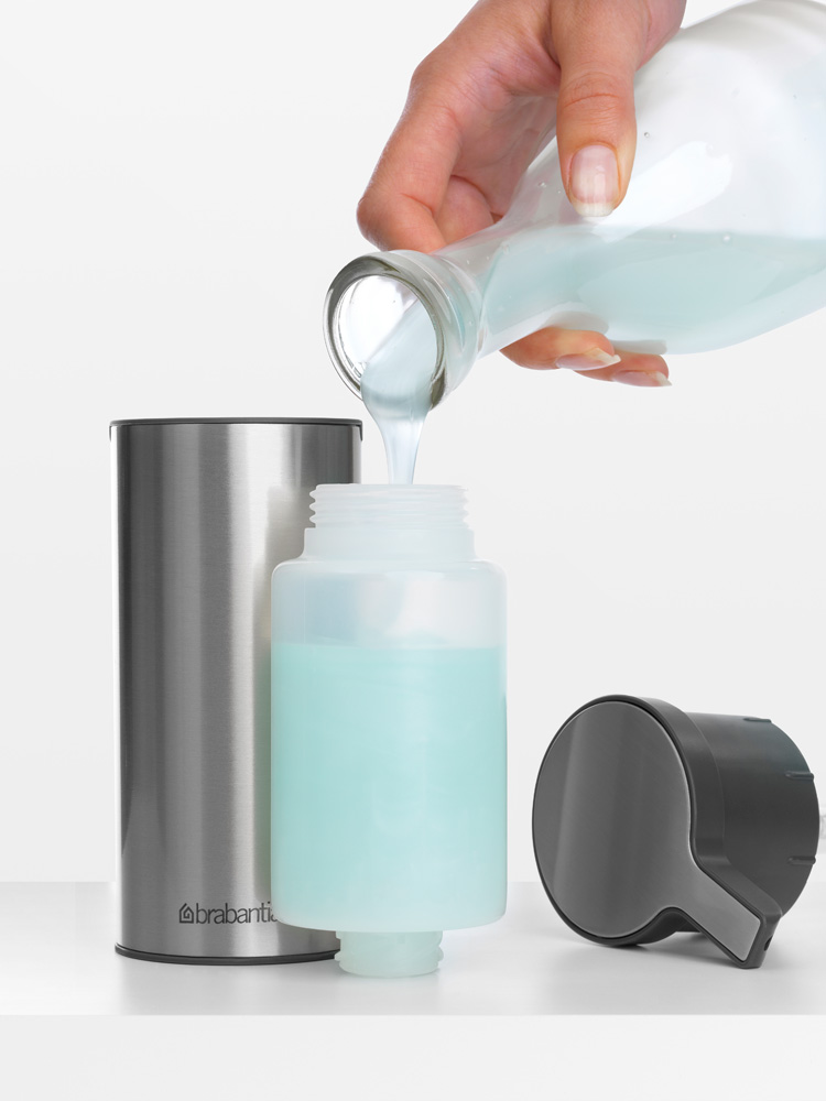 جا مایع دستشویی برابانتیا مدل سینک استایل دهانه پر کردن بزرگی دارد تا ریختن مایع با کنترل بهتر انجام شود و شارژ مجدد سریع تر و بدون دردسر باشد. ظرفیت 200 میلی لیتر برای بیشتر بسته های شارژ مناسب است و نیاز روزانه را به خوبی پوشش می دهد.