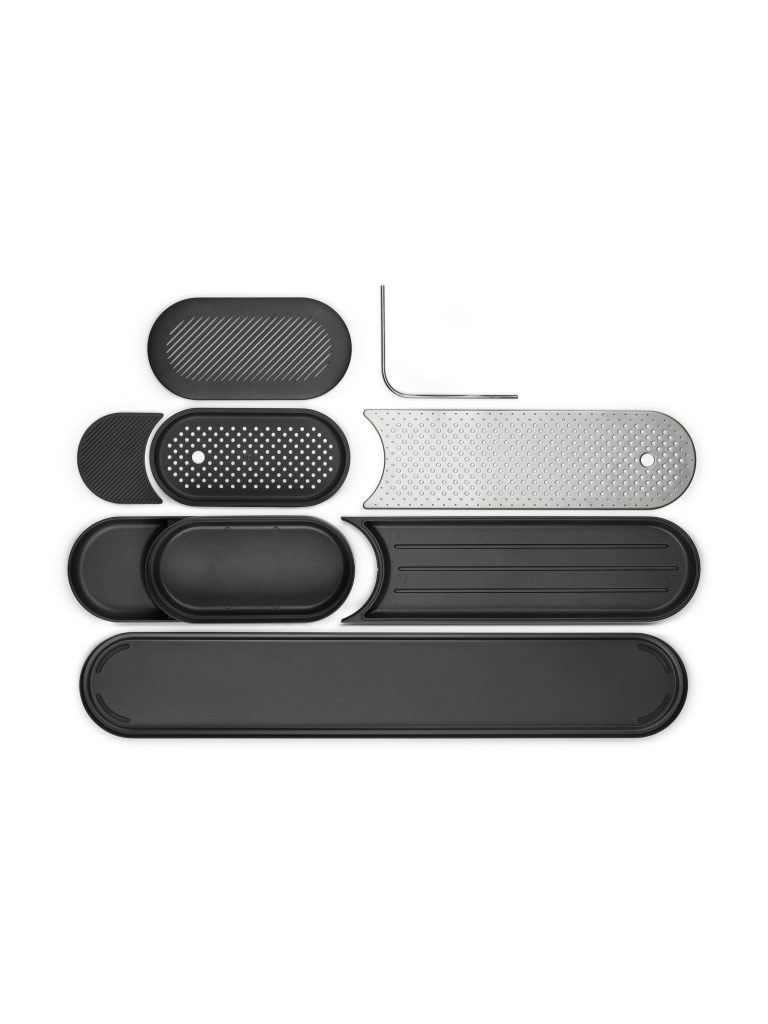ست ارگانایزر سینک برابانتیا مدل سینک استایل دو تیکه همراه یک سینی خشک کن مجزا ارائه می شود که آب اضافی را جمع می کند تا سطح کنار سینک خیس نماند. صفحه استیل ضدزنگ روی سینی به جریان هوا کمک می کند تا خشک شدن ظروف و وسایل سریع تر انجام شود و در صورت نیاز می توانید سینی را بدون صفحه استیل هم استفاده کنید.