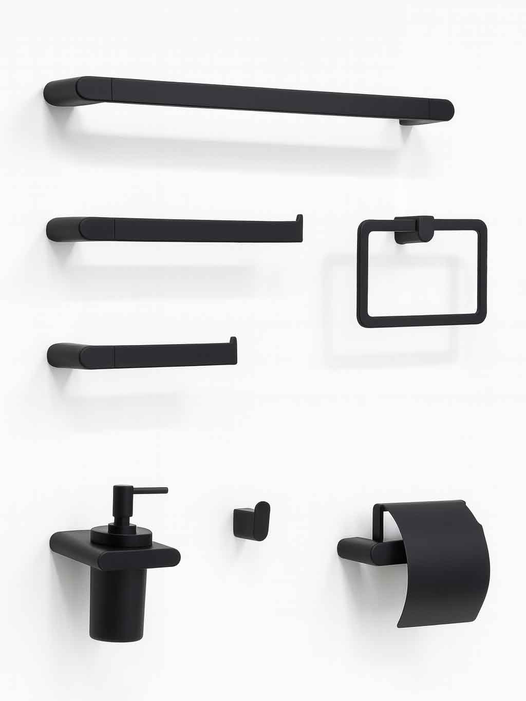 جا حوله, جا حوله کوتاه, جا صابون جامد, جا مایع, جا مسواک, دستمال رول بلند بدون کاور, دستمال کاور دار, دستمال کوتاه بدون کاور, قلاب تک شاخه