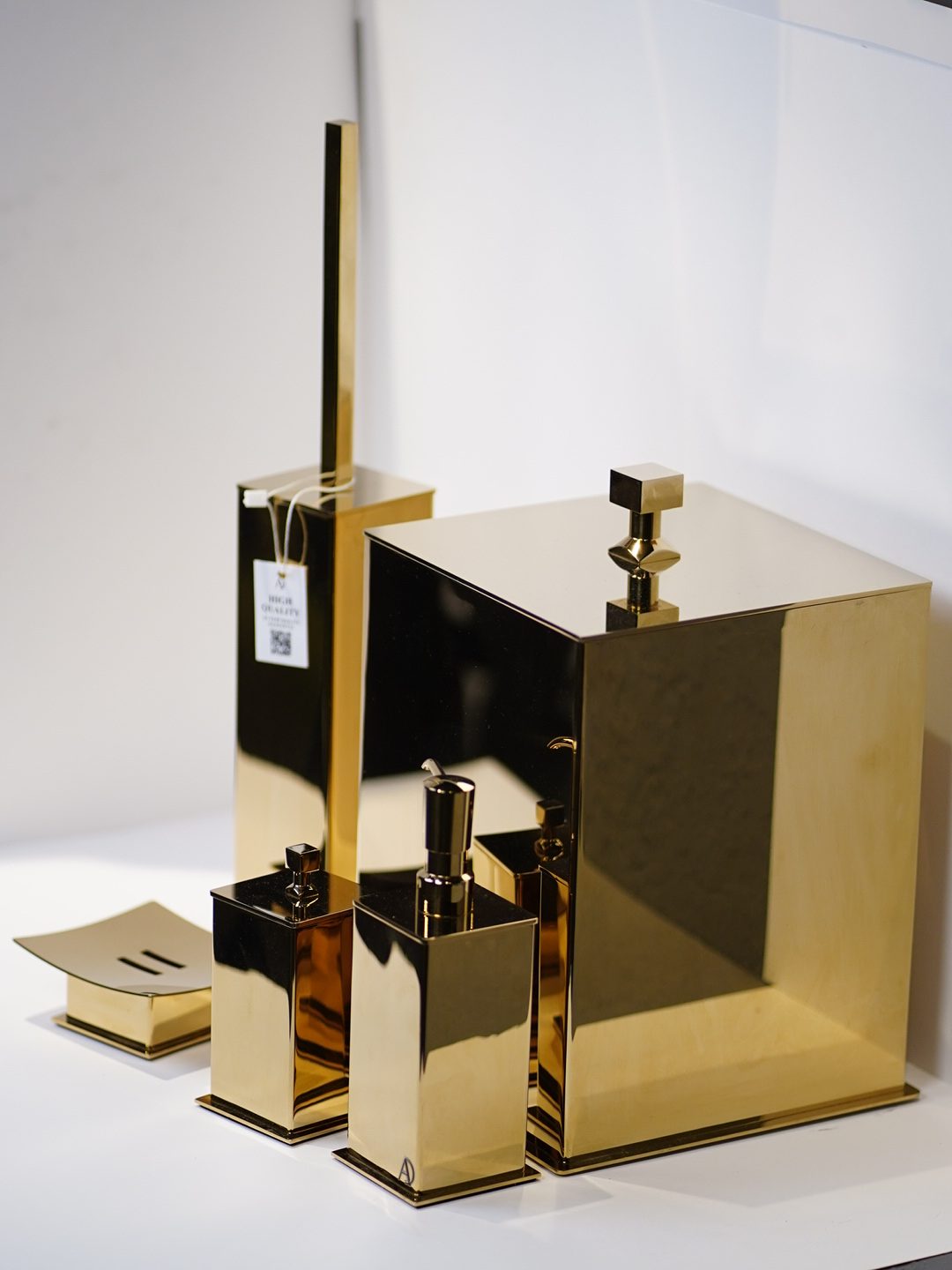 ست Defne Banio در سه رنگ کروم، استیل مات و طلایی عرضه می‌شود تا با هر سبک دکوراسیون هماهنگ شود.