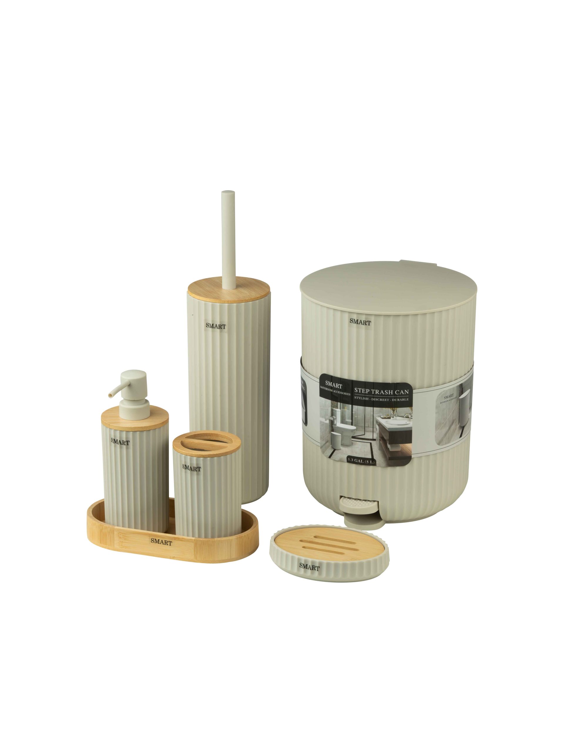 سطل زباله پدالی استفاده را راحت تر می کند و وجود سطل داخلی کمک می کند تخلیه و نظافت ساده تر انجام شود. اگر به دنبال ست هماهنگ با جزئیات کاربردی هستید، ست سرویس بهداشتی اسمارت کاسپر 6 پارچه می تواند انتخاب مرتب و قابل اتکایی برای سرویس اصلی یا سرویس مهمان باشد.