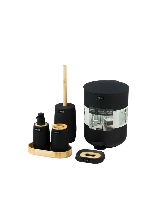ست سرویس بهداشتی اسمارت فلورا یک انتخاب کاربردی و هماهنگ برای مرتب کردن فضای سرویس بهداشتی و حمام است. بدنه اکریلیک نشکن در کنار جزئیات بامبو ضد آب، هم دوام خوبی می دهد و هم ظاهر فضا را شیک تر نشان می دهد.