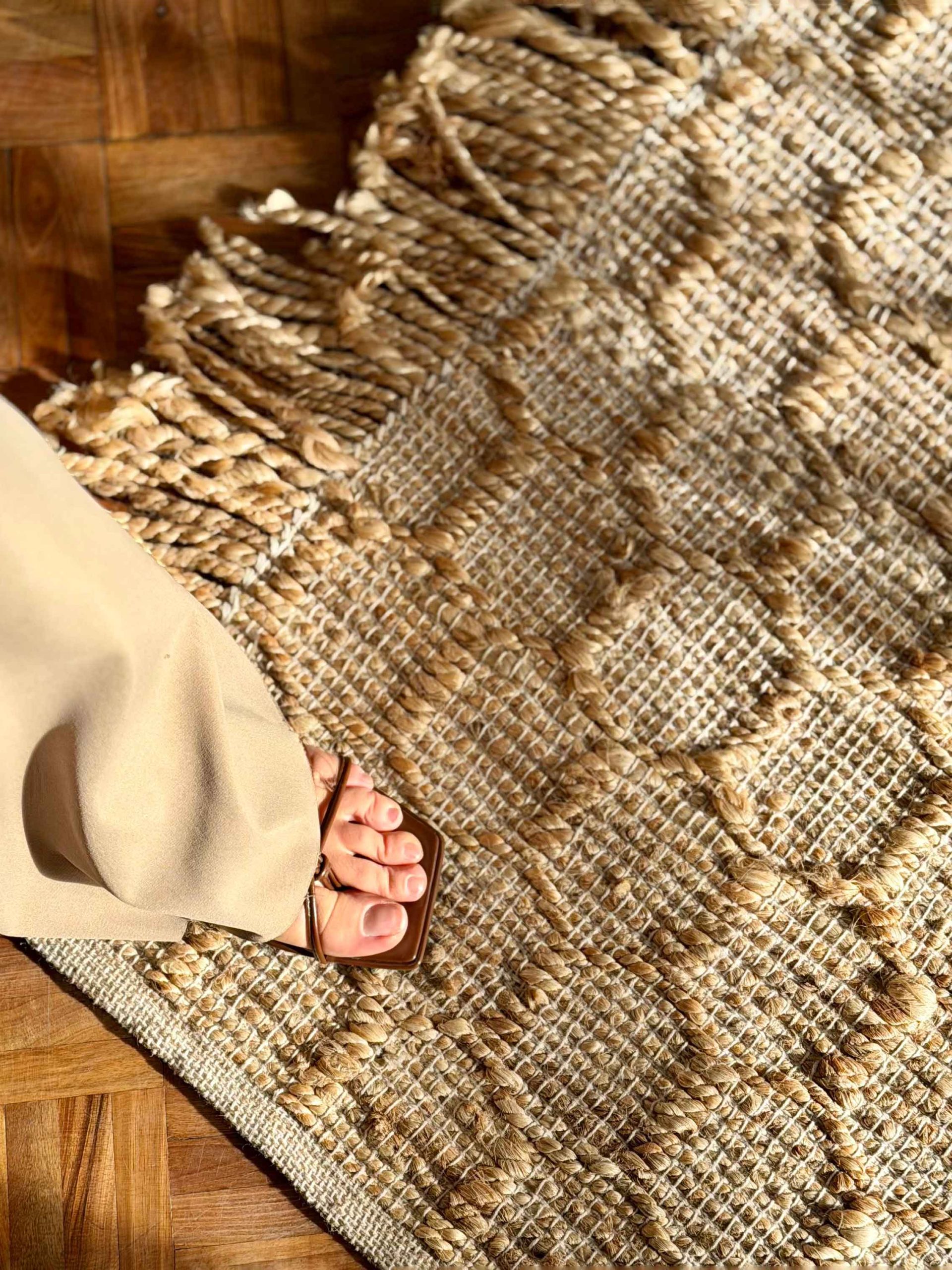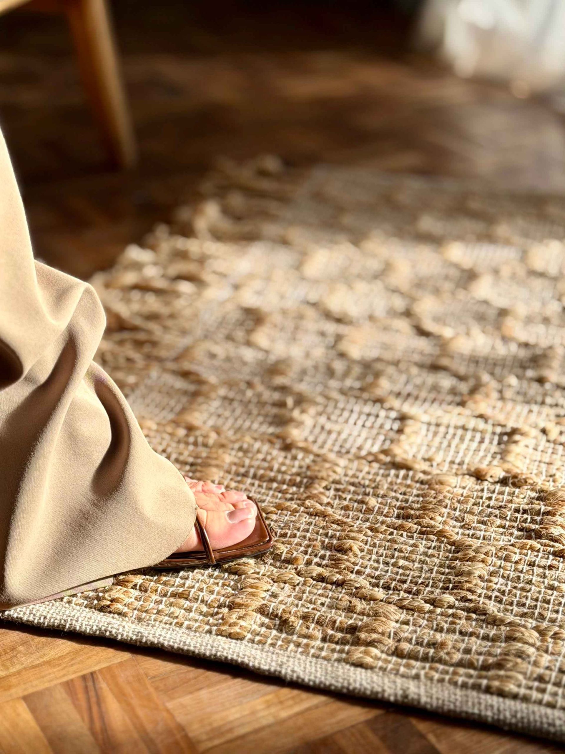 این گلیم از الیاف کاملا طبیعی جوت بافته شده و ظاهر دست ساز آن، حس ارگانیک و زنده ای به دکور اضافه می کند. رنگ خنثی و طبیعی جوت باعث می شود کنار چوب، سنگ و رنگ های روشن یا تیره به راحتی هماهنگ شود و در چیدمان های ساده، یک پایه گرم و متعادل بسازد.