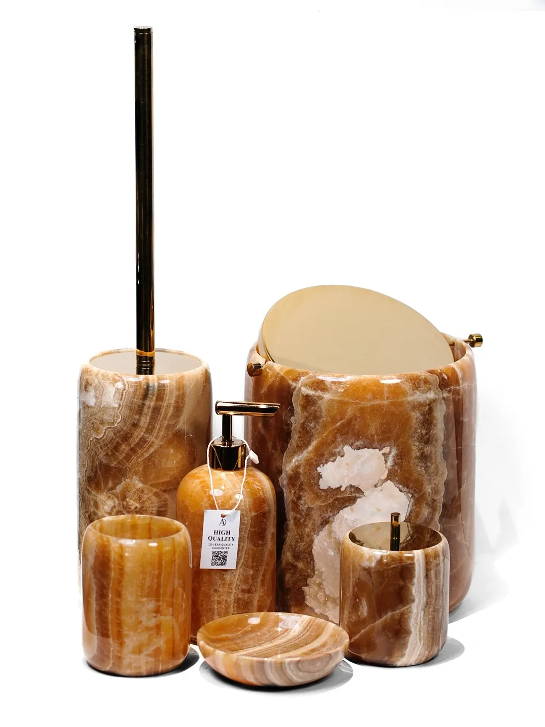ست سرویس بهداشتی سنگی مرمر عسلی 1900 انتخابی لوکس و منحصربهفرد برای فضاهای حمام و سرویس بهداشتی است.
