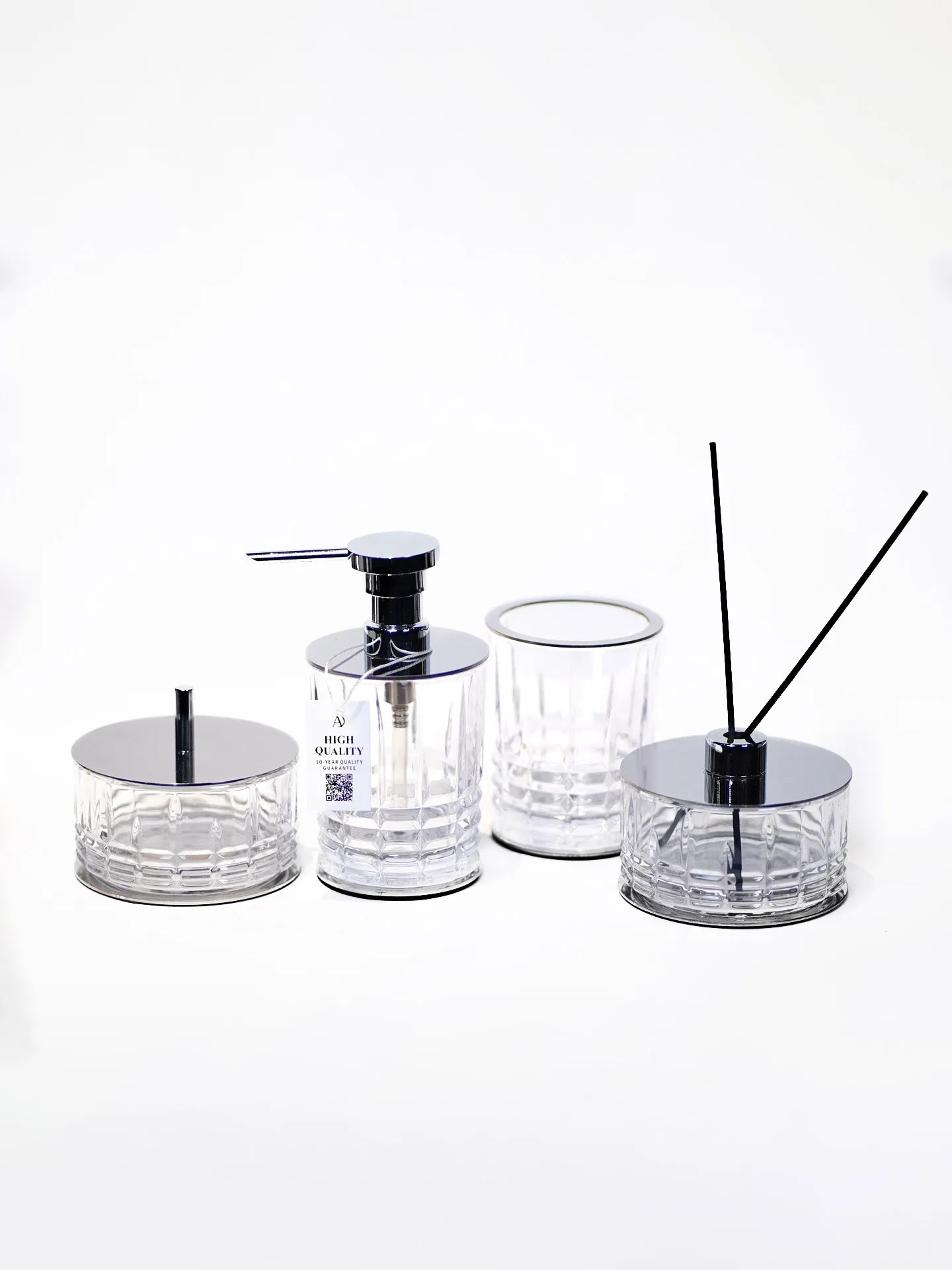 این محصولات از کریستال شفاف با بافت ظریف ساخته شده و یراقآلات آنها از برنج اصل با روکش ضدآب هستند؛ ترکیبی از مقاومت و زیبایی که جلوهای هنری به فضای حمام شما میدهد.
