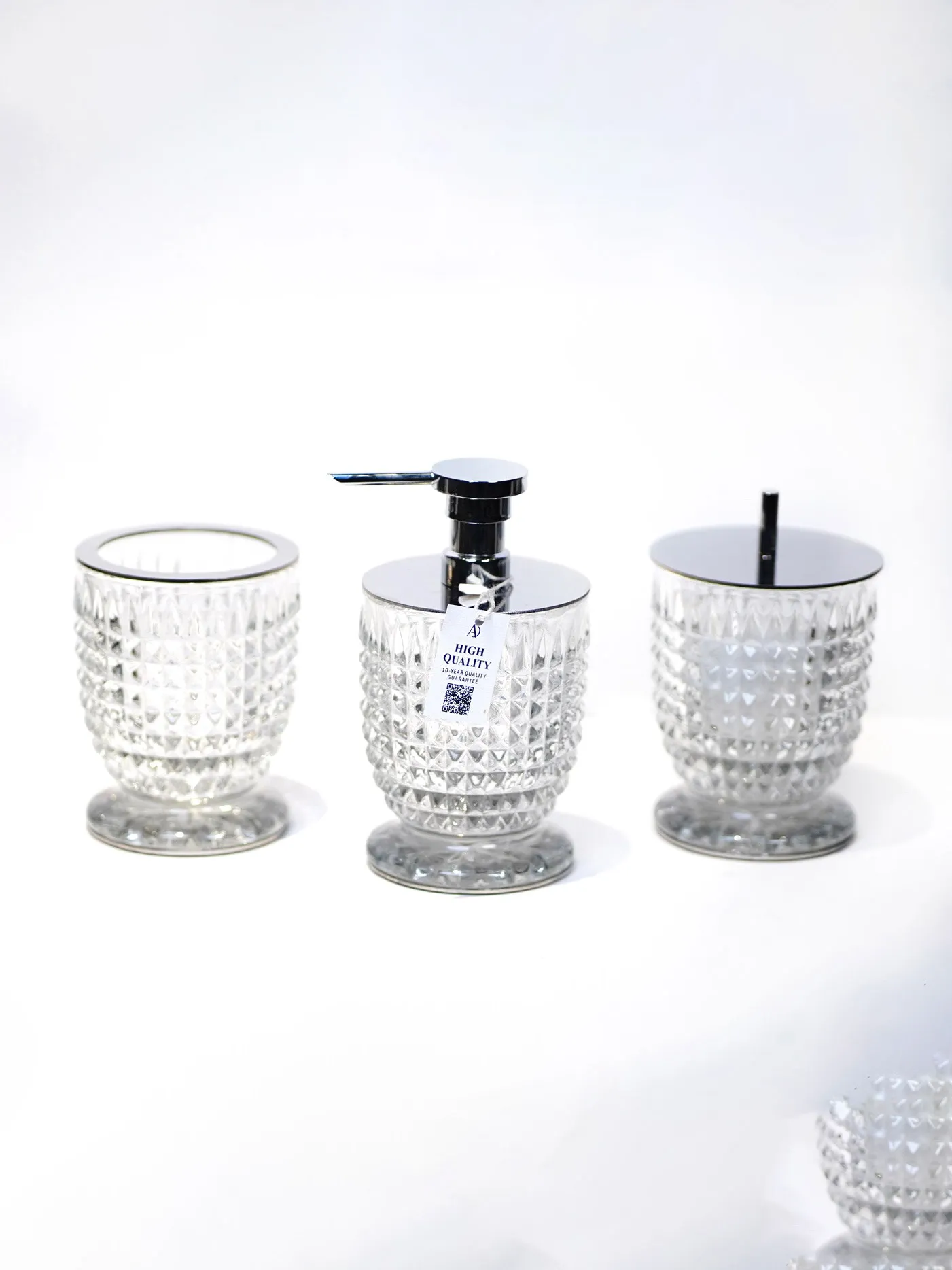 این محصولات از کریستال شفاف با بافت ظریف ساخته شده و یراقآلات آنها از برنج اصل با روکش ضدآب هستند؛ ترکیبی از مقاومت و زیبایی که جلوهای هنری به فضای حمام شما میدهد.